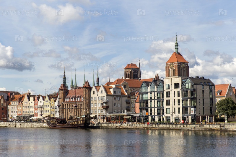 Польша. Гданьск. Здания в старых кварталах Гданьска на берегу реки Мотлавы. Польша. Гданьск