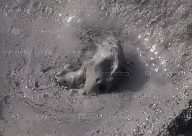 Россия. Курильские острова. Причудливые грязевые пузыри, пузырящиеся фумаролы у подножья спящего вулкана Барановского на острове Итуруп