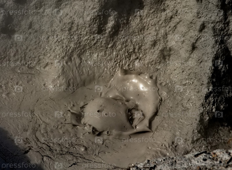 Россия. Курильские острова. Причудливые грязевые пузыри, пузырящиеся фумаролы у подножья спящего вулкана Барановского на острове Итуруп