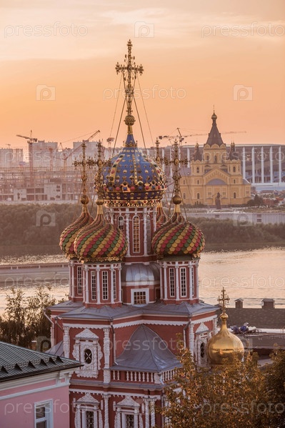 Религия и культура. Церковь Рождества Христова на закате, вид с холма. Россия, Нижний Новгород, август 2023 г