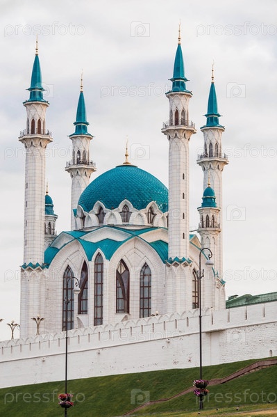 Главная достопримечательность города Казани. Мечеть Кул Шариф на фоне утреннего неба. Кремль. Раннее утро. Город Казань, Республика Татарстан, Россия, сентябрь 2023 г