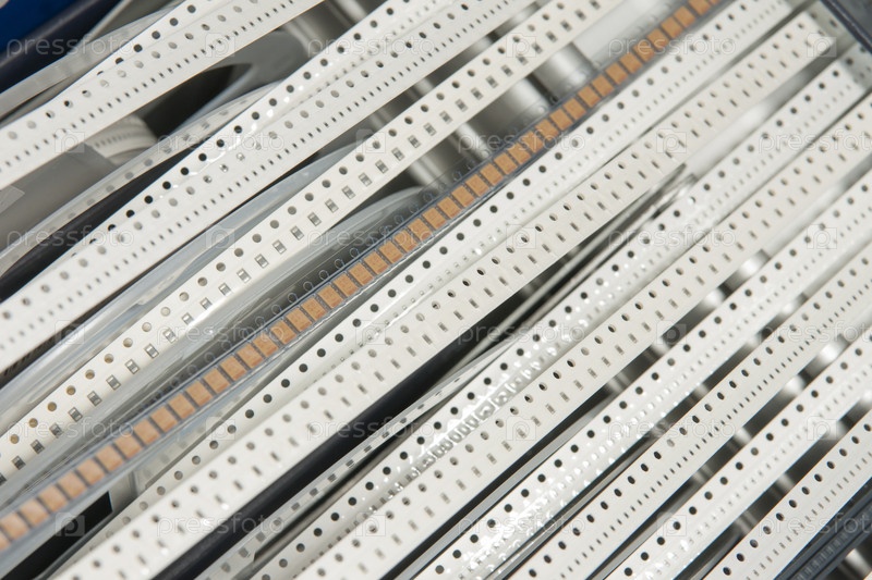 Россия. Санкт-Петербург. Производство радиоэлектроники. Катушка с компонентами для сборки печатных плат и микросхем. Россия. Санкт-Петербург. Производство радиоэлектроники. Шпулька с компонентами для сборки печатной платы и микрочипов