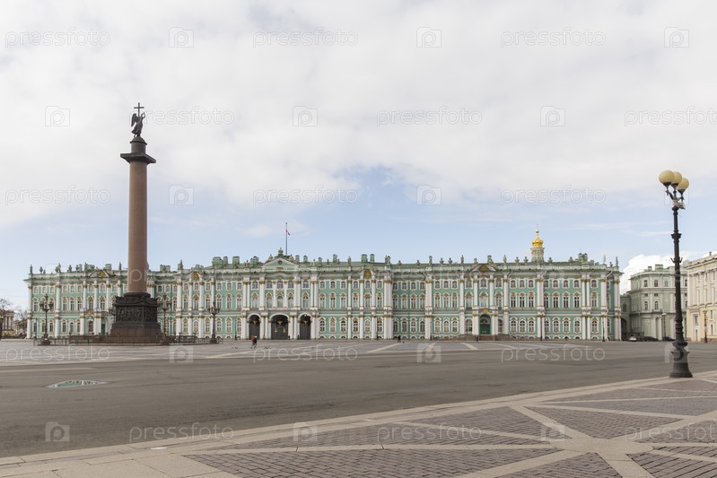 Россия. Санкт-Петербург. Дворцовая площадь. Александрийская колонна. Эрмитаж (Зимний дворец). Город во время пандемии коронавируса Covid-19