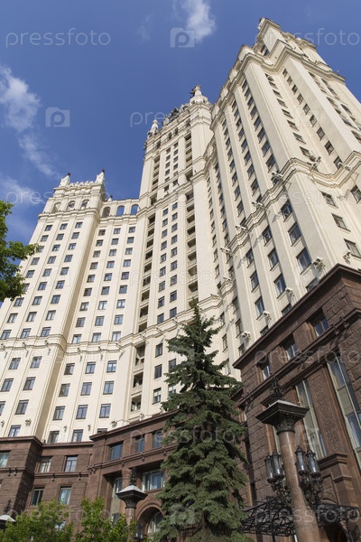 Россия.Москва.Здание многоэтажного жилого дома на Котельническом набережной.Россия.Москва. Здание высокогорного жилого здания на Kotelnicheskaya заборе
