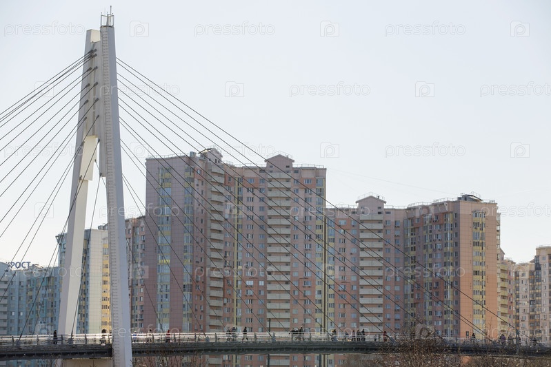 Россия. Москва. Пешеходный мост через Москву-реку от Павшинской поймы до станции метро Мякинино.Россия.Москва.Пешеходный мост через реку Московскую с Павшинской паводковой равнины до станции метро Мякинино