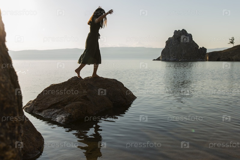 Россия. Ольхон, Хужир. Виды острова Ольхон и озера Байкал. Скала Шаманка на мысе Бурхан. Виды острова Ольхон и озера Байкал. Скала Шаманка на мысе Бурхан