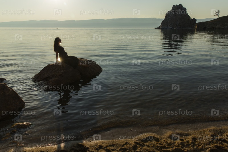 Россия. Ольхон, Хужир. Виды острова Ольхон и озера Байкал. Скала Шаманка на мысе Бурхан. Виды острова Ольхон и озера Байкал. Скала Шаманка на мысе Бурхан