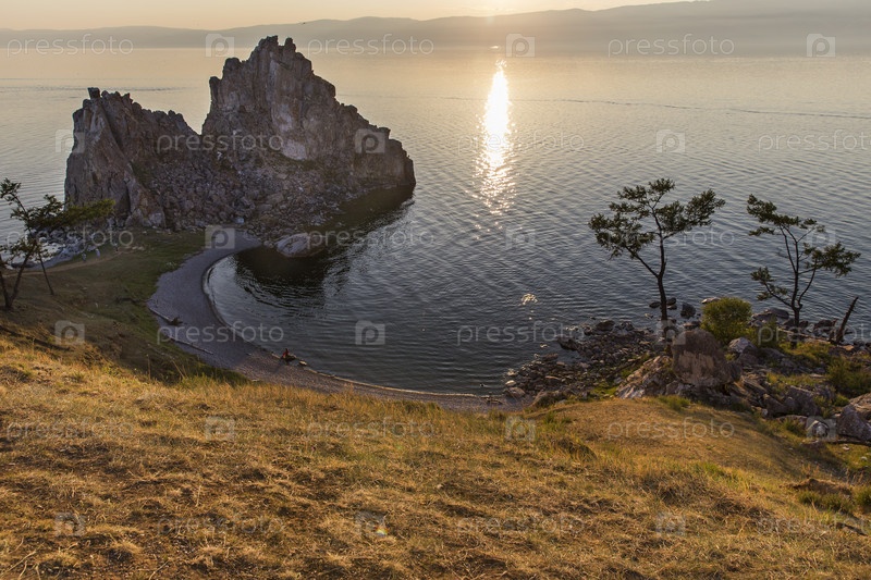 Россия. Ольхон, Хужир. Виды острова Ольхон и озера Байкал. Скала Шаманка на мысе Бурхан. Виды острова Ольхон и озера Байкал. Скала Шаманка на мысе Бурхан