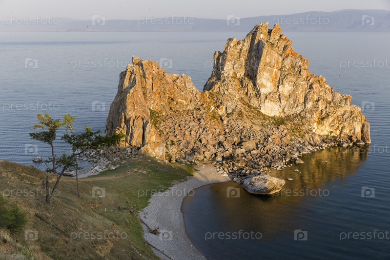 Россия. Ольхон, Хужир. Виды острова Ольхон и озера Байкал. Скала Шаманка на мысе Бурхан. Виды острова Ольхон и озера Байкал. Скала Шаманка на мысе Бурхан