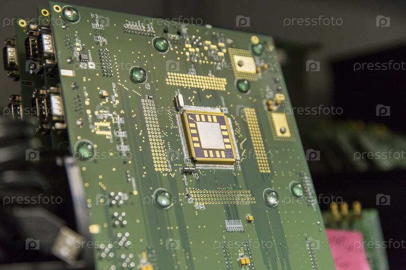 Россия. Санкт-Петербург. Производство радиоэлектроники. Сборная печатная плата. Микросхемы. Россия. Санкт-Петербург. Производство радиоэлектроники. The assembled printed circuit board