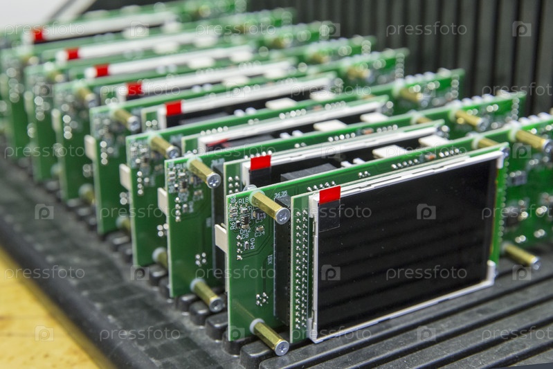 Россия. Санкт-Петербург. Производство радиоэлектроники. Сборная печатная плата. Микросхемы. Россия. Санкт-Петербург. Производство радиоэлектроники. The assembled printed circuit board
