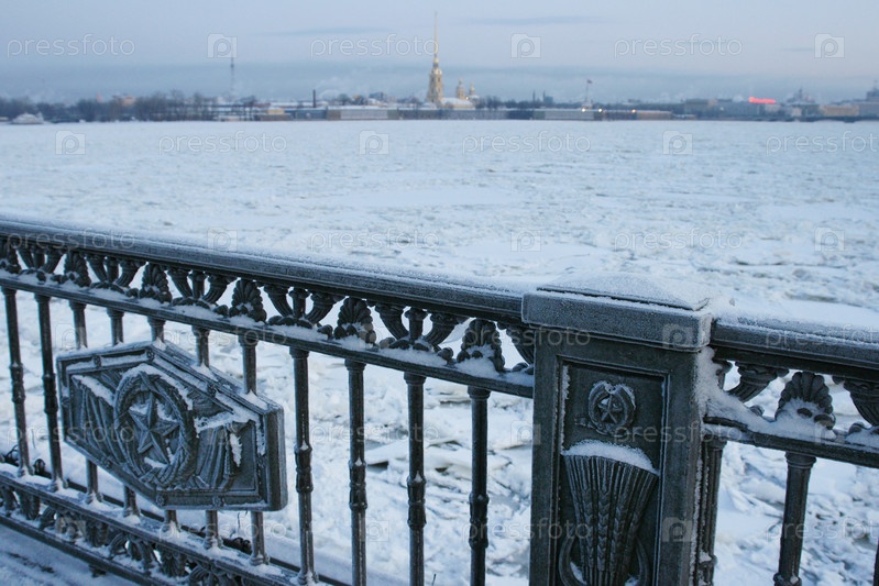 Россия. Санкт-Петербург. Иней на перилах Дворцового моста. Россия. Петербург. Мороз на ограждении дворцового моста
