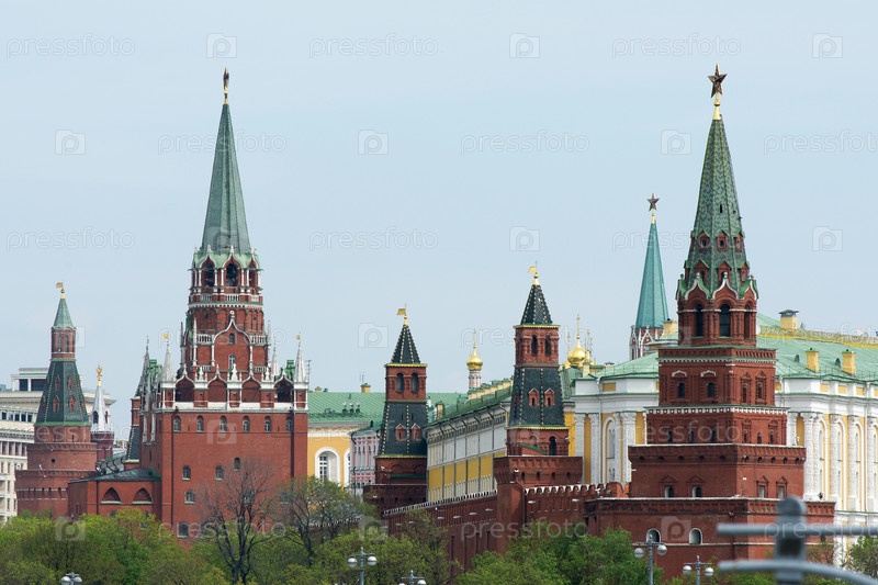 Россия. Москва. Вид на московский Кремль и кремлевские башни. Россия. Москва. Вид на Московский Кремль и кремлевские башни