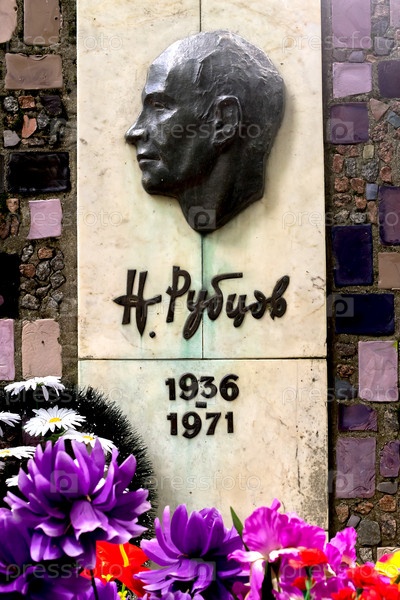 Мраморная доска и барельеф на могиле поэта Н.М. Рубцова