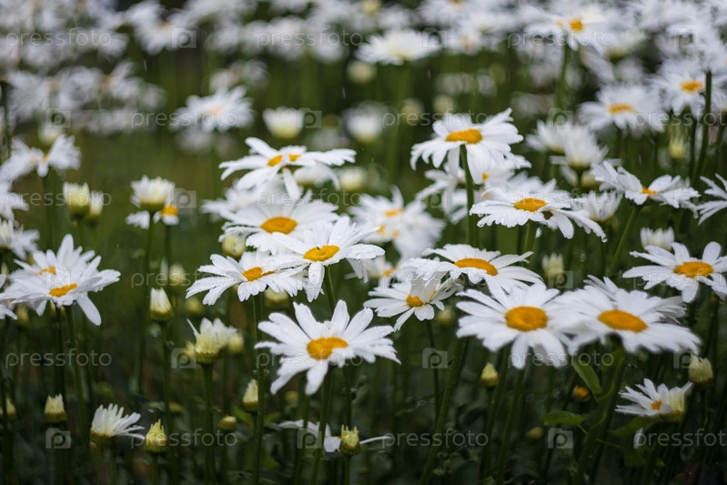 Садовые ромашки под дождем