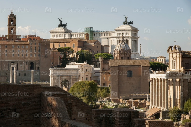 Италия. Рим. Вид на памятник Витторио на Венецианской площади и римский форум. Италия. Рим. Вид на монумент Витторио на Венецианской площади и римском форуме