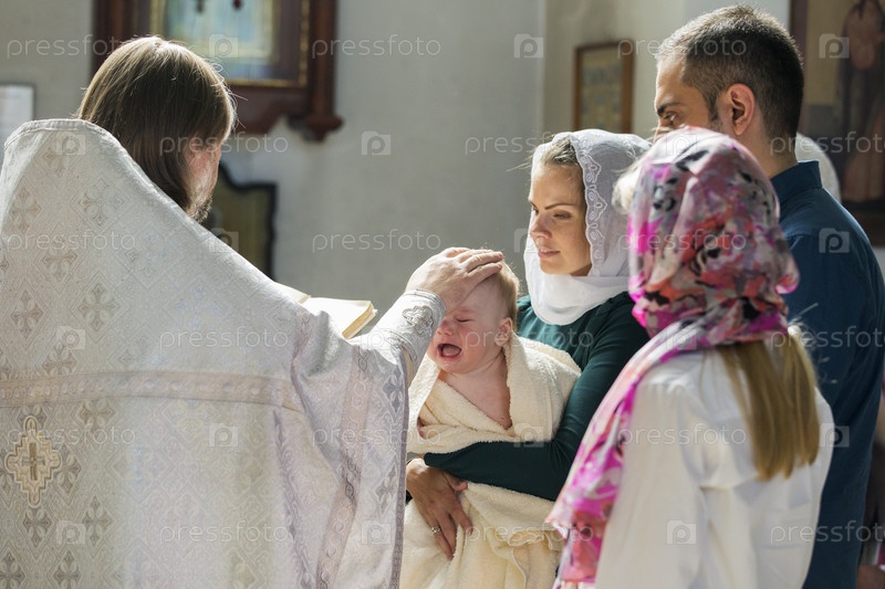 Россия. Санкт-Петербург. Обряд крещения в православной церкви. Верующие в церковь. Россия. Санкт-Петербург. Ритуал крещения в православной церкви. Верующие в церкви