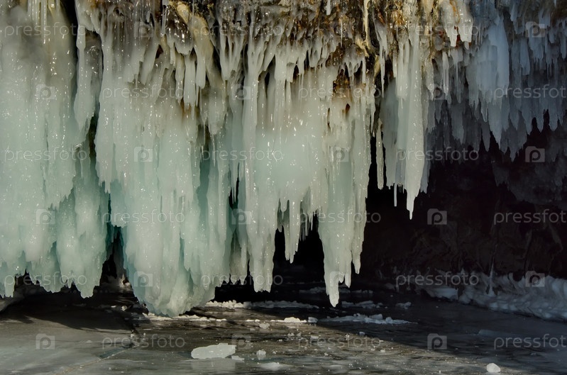 Россия. Восточная Сибирь. Причудливые сосульки многочисленных пещер и гротов на острове Ольхон озера Байкал