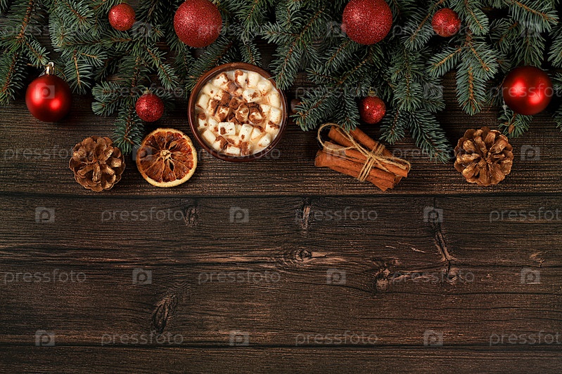 Рождественский алкогольный или безалкогольный шоколадный коктейль с зефиром и корицей, согревающий зимний напиток в холодное время года на деревянном фоне, рождественский праздничный грог, гоголь-моголь, зимняя композиция, избирательный фокус