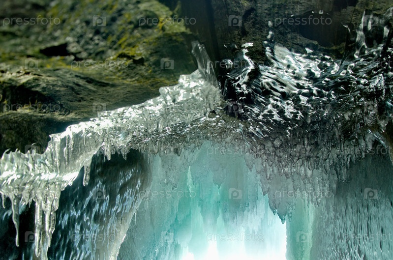 Россия. Восточная Сибирь. Причудливые сосульки многочисленных пещер и гротов на острове Ольхон озера Байкал
