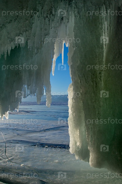Россия. Восточная Сибирь. Причудливые сосульки многочисленных пещер и гротов на острове Ольхон озера Байкал