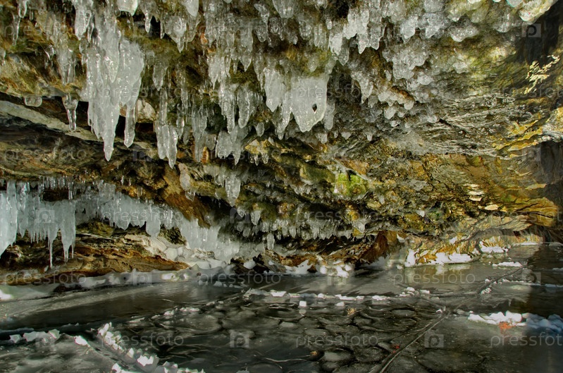 Россия. Восточная Сибирь. Причудливые сосульки многочисленных пещер и гротов на острове Ольхон озера Байкал