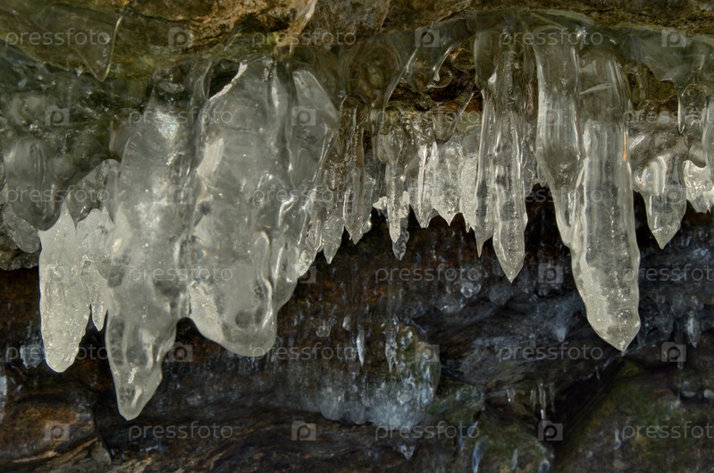 Россия. Восточная Сибирь. Причудливые сосульки многочисленных пещер и гротов на острове Ольхон озера Байкал