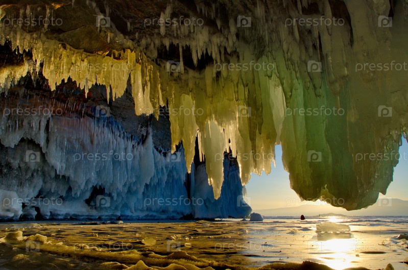 Россия. Восточная Сибирь. Причудливые сосульки многочисленных пещер и гротов на острове Ольхон озера Байкал