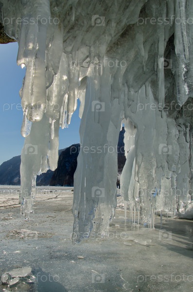 Россия. Восточная Сибирь. Причудливые сосульки многочисленных пещер и гротов на острове Ольхон озера Байкал
