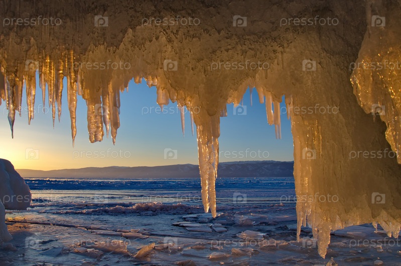 Россия. Восточная Сибирь. Причудливые сосульки многочисленных пещер и гротов на острове Ольхон озера Байкал