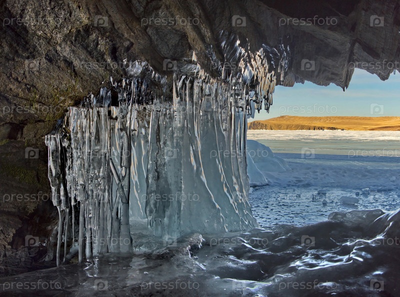 Россия. Восточная Сибирь. Причудливые сосульки многочисленных пещер и гротов на острове Ольхон озера Байкал