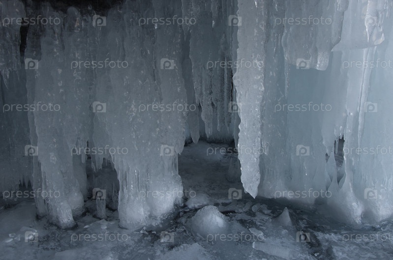 Россия. Восточная Сибирь. Причудливые сосульки многочисленных пещер и гротов на острове Ольхон озера Байкал