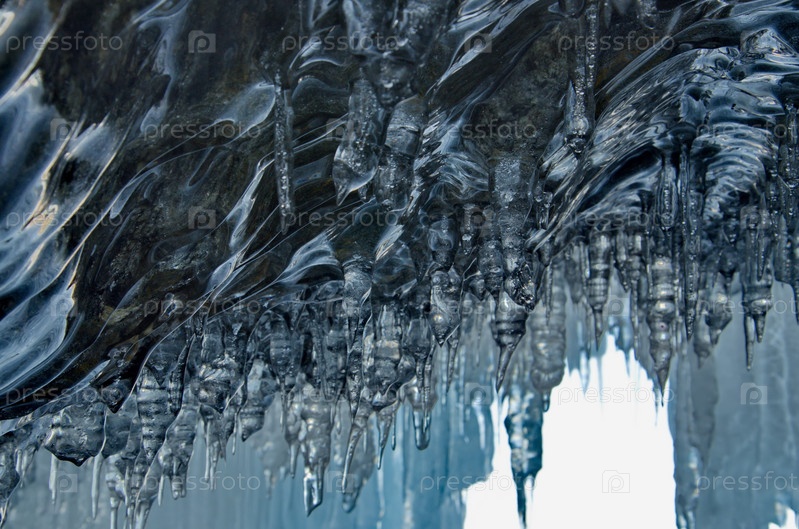 Россия. Восточная Сибирь. Причудливые сосульки многочисленных пещер и гротов на острове Ольхон озера Байкал
