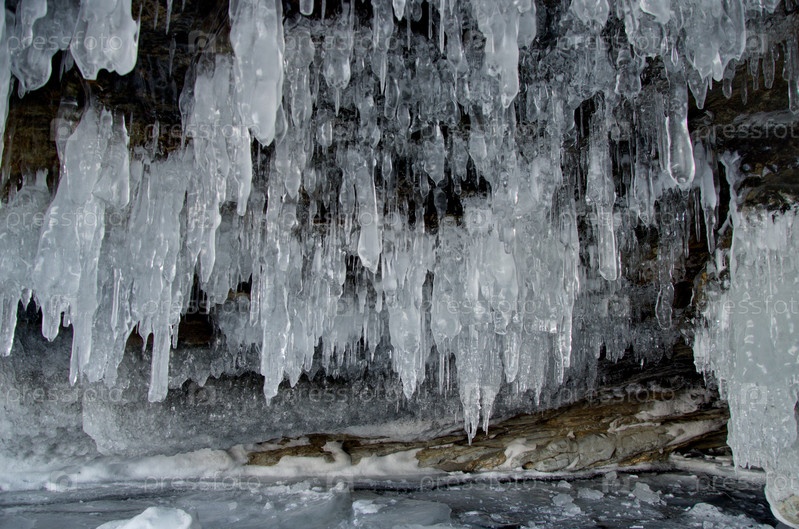 Россия. Восточная Сибирь. Причудливые сосульки многочисленных пещер и гротов на острове Ольхон озера Байкал
