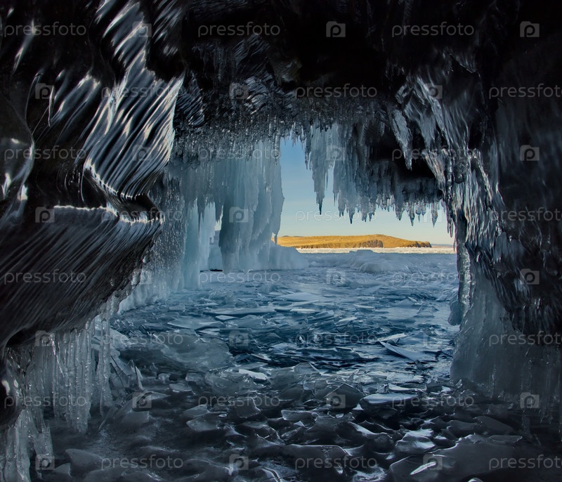 Россия. Восточная Сибирь. Причудливые сосульки многочисленных пещер и гротов на острове Ольхон озера Байкал