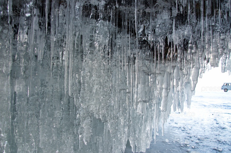 Россия. Восточная Сибирь. Причудливые сосульки многочисленных пещер и гротов на острове Ольхон озера Байкал