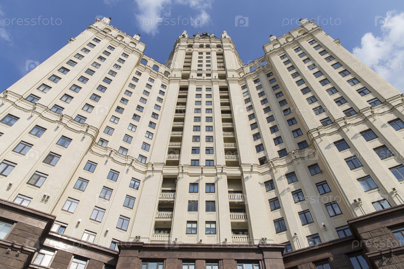 Россия.Москва.Здание многоэтажного жилого дома на Котельническом набережной.Россия.Москва. Здание высокогорного жилого здания на Kotelnicheskaya заборе