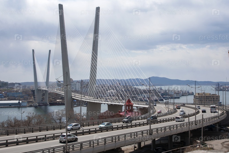 Россия. Владивосток. Водоворотный мост через залив Золотой Рог. Россия. Владивосток. Кабельный мостик над заливом Золотого Рога