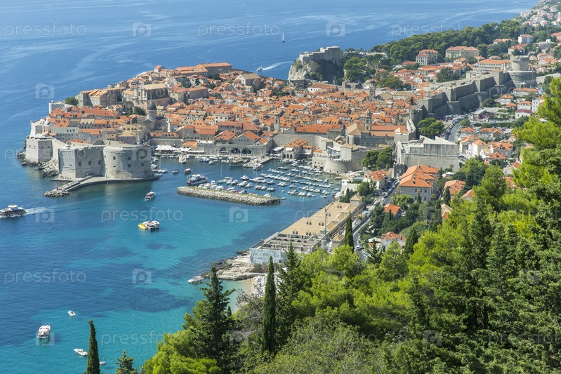 Хорватия. Дубровник. Вид сверху на город Дубровник. Виды Хорватии. Хорватия. Дубровник. Верхний вид города Дубровника. Типы Хорватии