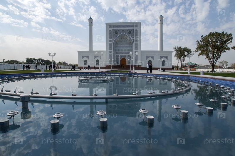 Узбекистан.Ташкент.Вид на современную мечеть Малой и фонтан.Узбекистан.Ташкент.Взгляд на современную Малую мечеть и фонтан