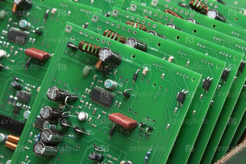 Россия. Санкт-Петербург. Производство радиоэлектроники. Сборная печатная плата. Микросхемы. Россия. Санкт-Петербург. Производство радиоэлектроники. The assembled printed circuit board
