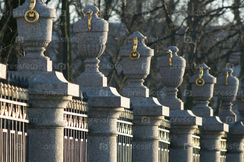Россия. Санкт-Петербург. Декоративные вазы и урны на заборе летнего сада. Россия. Санкт-Петербург. Декоративные вазы и урны на ограждении летнего сада
