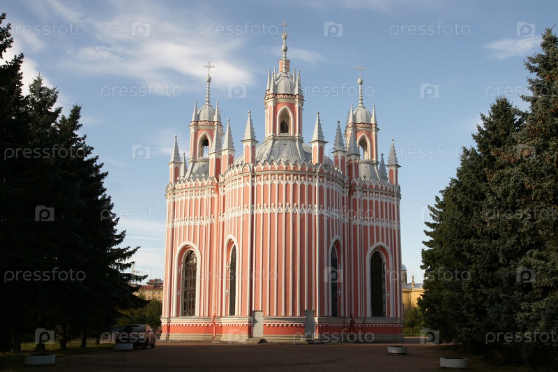 Россия. Санкт-Петербург. Вид на православный храм Чесменская церковь. Россия. Санкт-Петербург. Вид на православную церковь Церковь Чезма