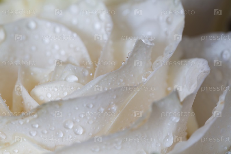Белая роза в каплях воды макро
