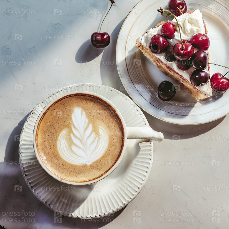 Кофе капучино и кусочек торта