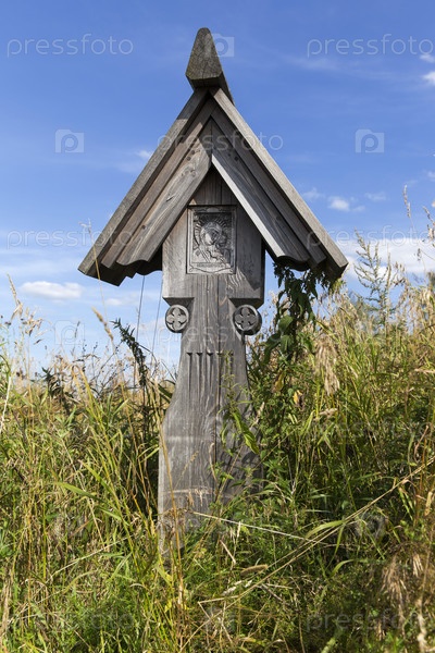 Россия. Ивановская область, Плес. Виды Плеса. Надгробье на Петропавловском кладбище на горе Левитана. Types Of Ples. Tombstone at the Peter and Paul cemetery on mount Levitan