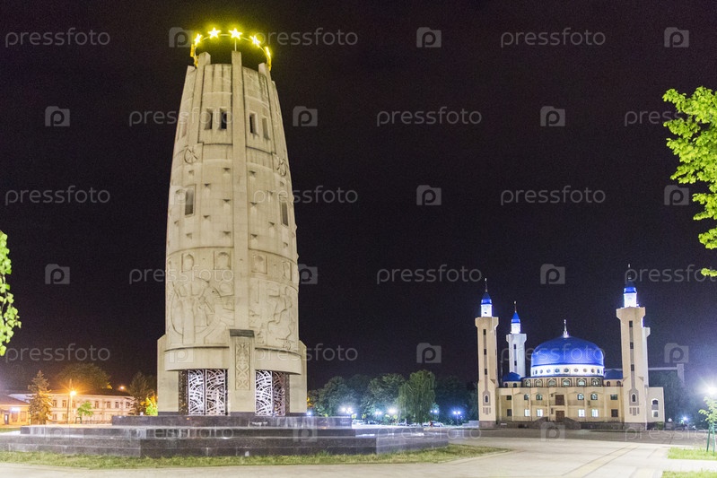 Россия. Республика Адыгея, город Майкоп. Монументальный комплекс Единство и согласие. Соборная мечеть в Майкопе. Россия. Республика Адыгея, город Майкоп. Монументальный комплекс 'Единство и гармония'. Мечеть собора Майкопа