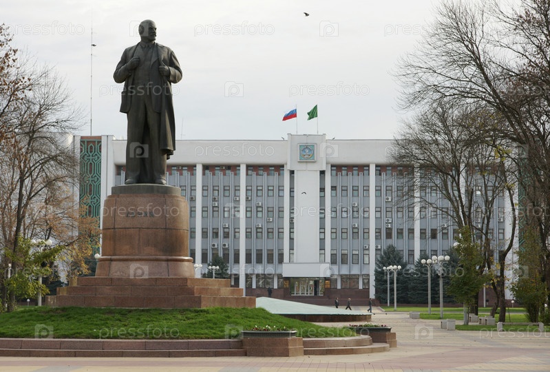 Россия. Республика Адыгея, Майкоп. Памятник Ленину на площади Ленина перед зданием администрации Адыгейской республики (Белый дом). Россия
