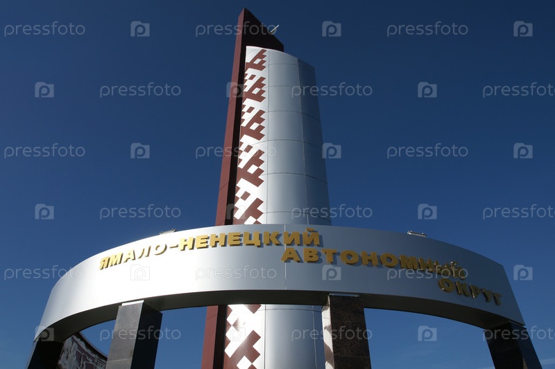Россия. Салехард. Стела с надписью Ямало-Ненецкий автономный округ (ЯНАО). Россия. Салехард. Стела с надписью Yamalo-Nenets Autonomous Okrug (YANAO)
