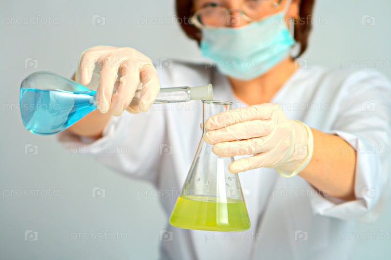 Женщина с флаконом в лаборатории